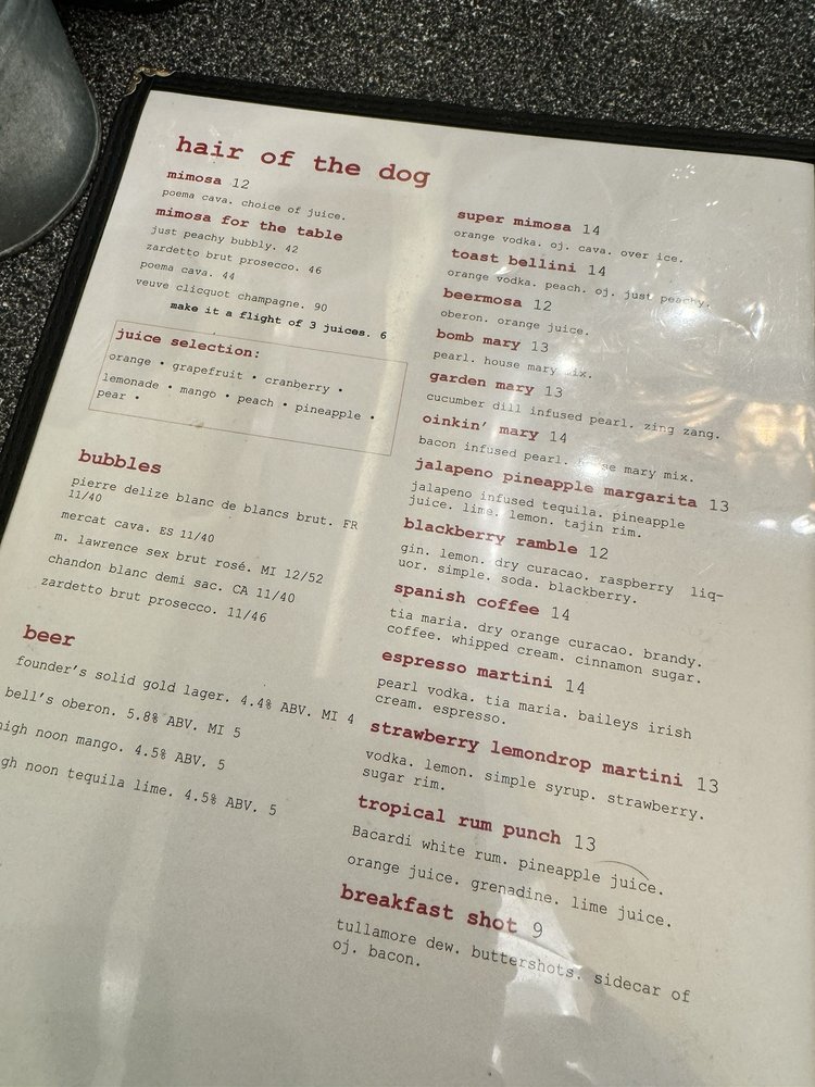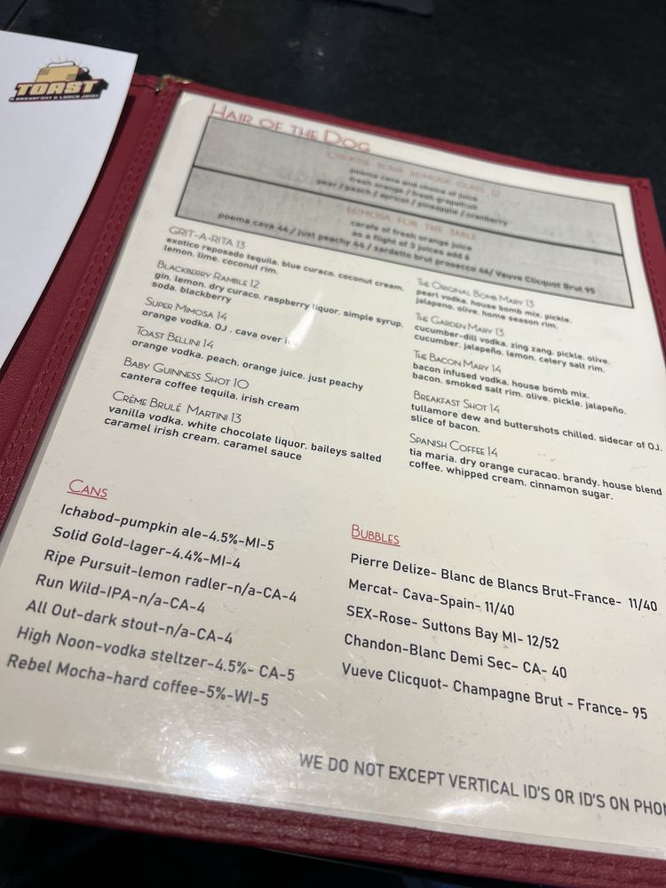 Toast, located in Ferndale, MI, offers a diverse menu filled with unique and delightful dishes. From their signature avocado toast to the mouthwatering lox bagel, Toast caters to a range of preferences, including vegan and vegetarian options. The restaurant prides itself on its friendly service, cozy atmosphere, and delicious food, making it a favorite spot for locals and visitors alike. Customers rave about the innovative dishes, such as the Trashy Hashy and vegan scramble, highlighting the restaurant's commitment to quality and flavor. Whether you're looking for a leisurely brunch or a quick bite to eat, Toast provides a welcoming environment with a diverse menu to satisfy all tastes. With options for outdoor seating, catering, and even gender-neutral restrooms, Toast strives to be inclusive and accommodating to all guests.